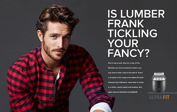 These days, coffee shops, bars, and gyms aren't just full of Lumber Jacks. The "Lumber Sexual" trend means every Lumber Tom, Dick and Harry has a beard. Clarisonic launched their new Alpha Fit sonic cleanser to men by reaching out to the women who must live with them ... and their beards. CLIENT: L'Oreal/Clarisonic CD/WRITER: Jeff Huggins CD/Art Director: Andrea Janetos PHOTO: Stock.